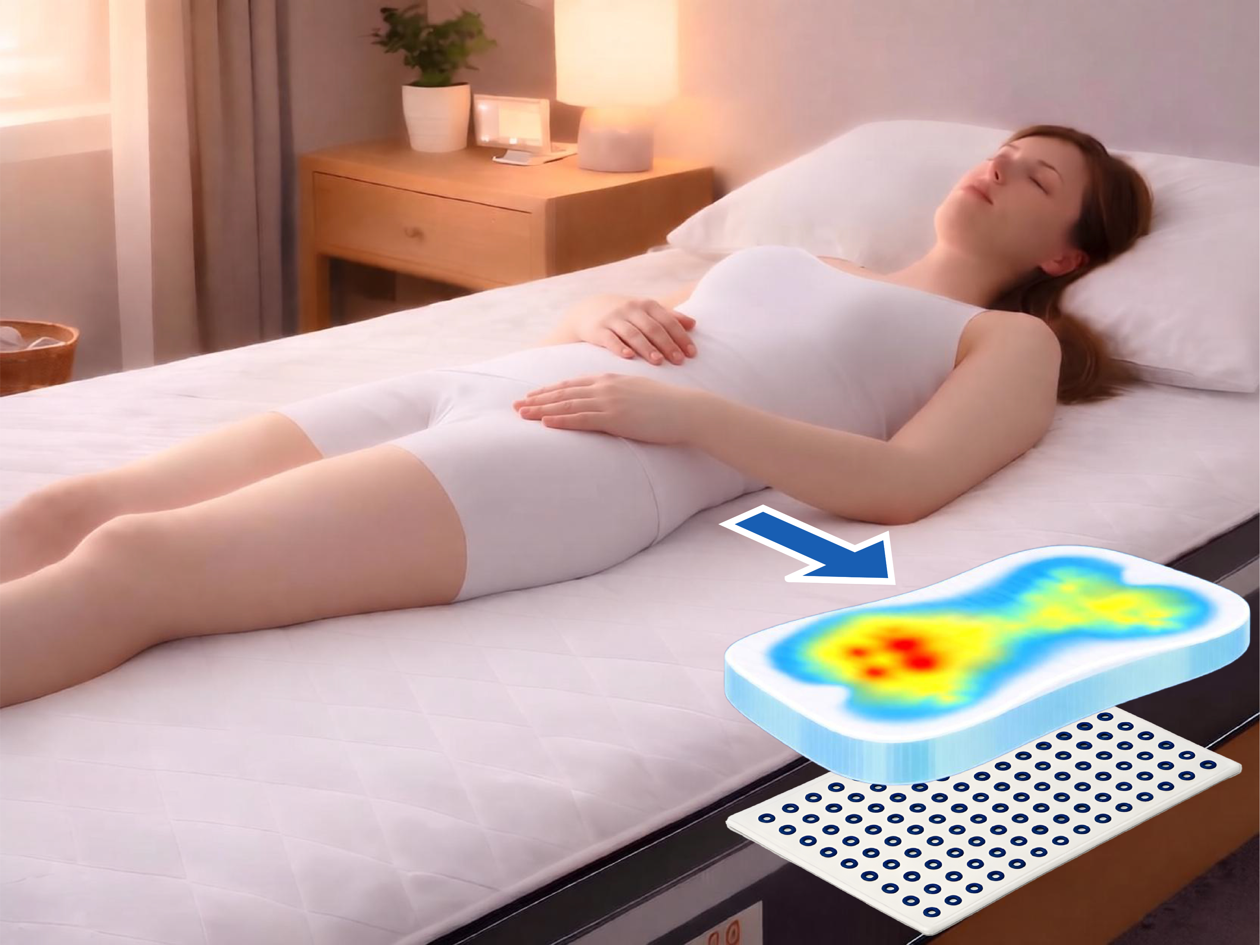 Sensors read how your body loads the mattress and identify hotspots that cause turning.